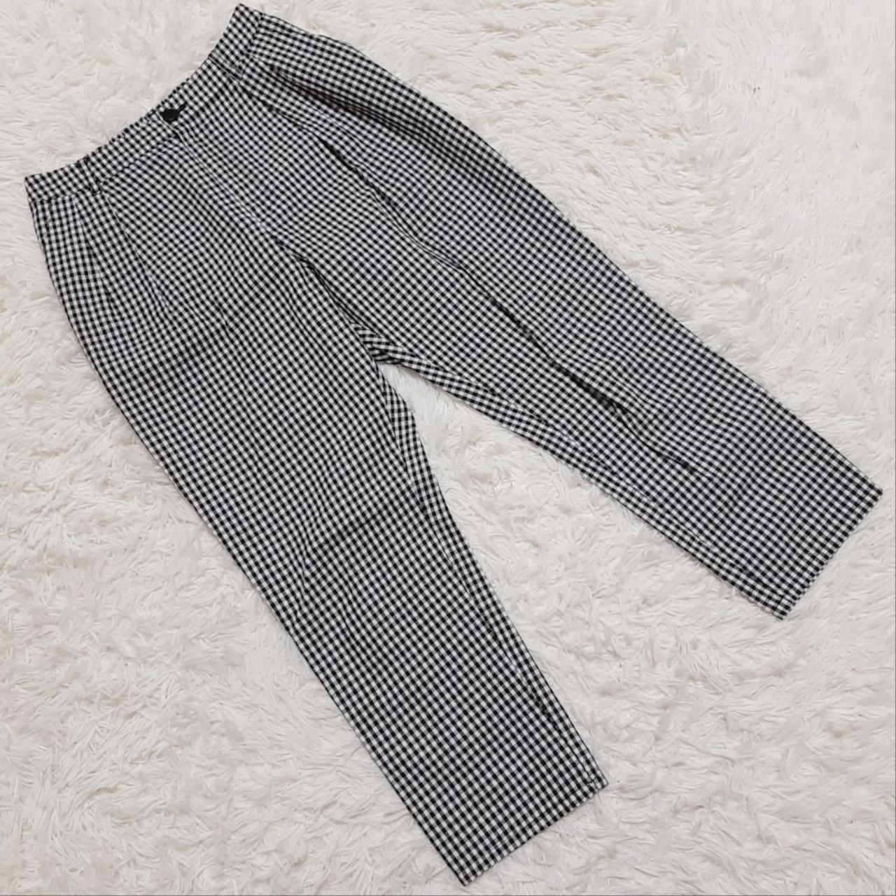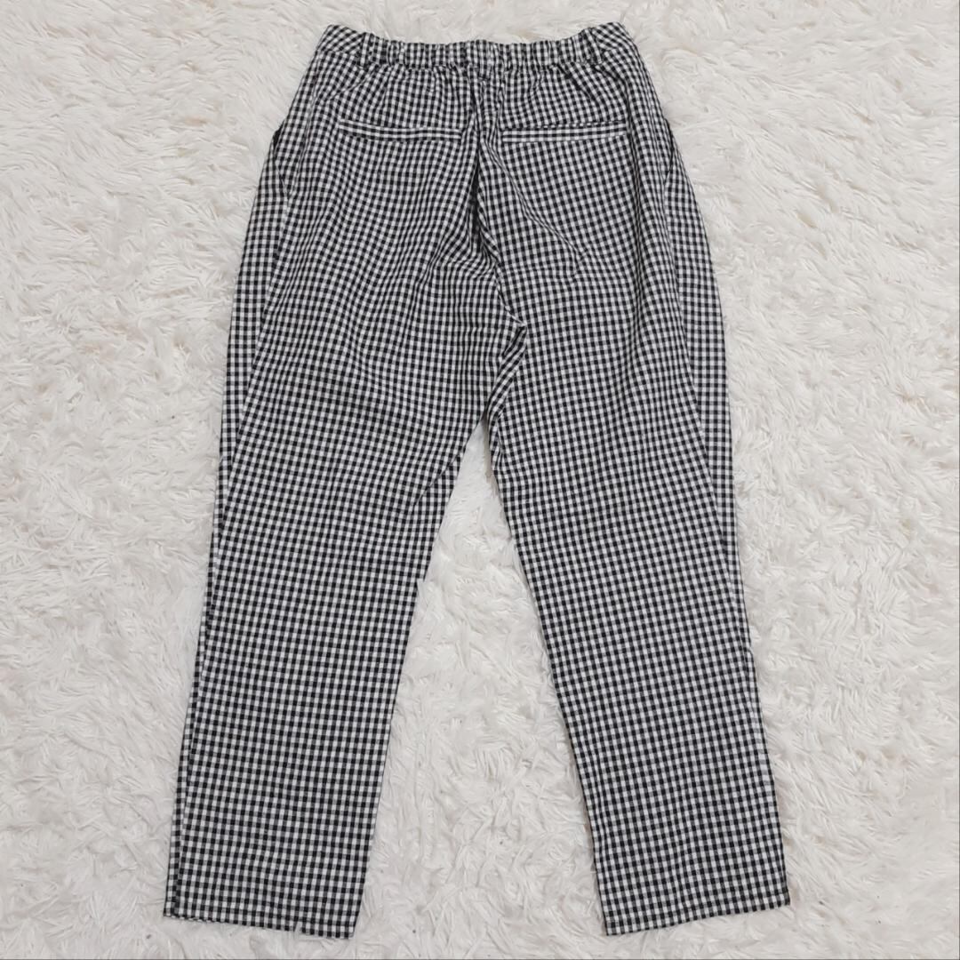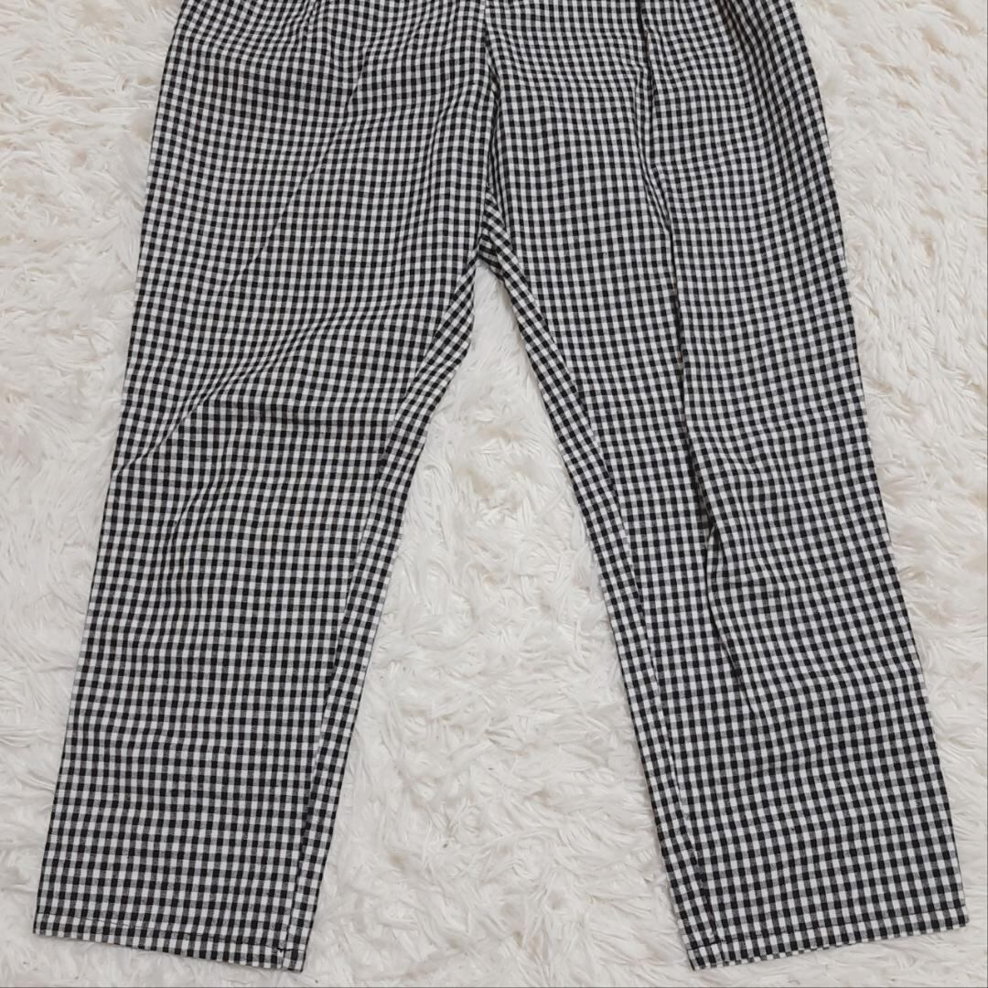 軽やかな風を感じさせる、『KBF』 ケービーエフ (F) の綿麻タックテーパードパンツ ギンガムチェック。涼し気なチェック柄が目を引く一本です。ウエスト部分に程よいタックが入り、脚長効果も◎。シルエットがきれいに決まるので、オフィスやデイリーコーデにもおすすめです。